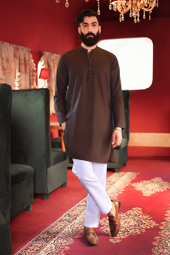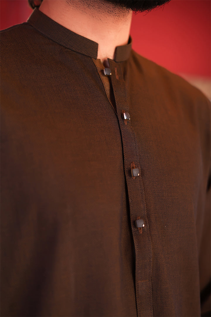 This outfit features an imported 100% cotton Shamray base kurta, paired with a premium imported cotton Zeen base trouser. Crafted for comfort and elegance, it offers a refined look with breathable fabric perfect for all-day wear