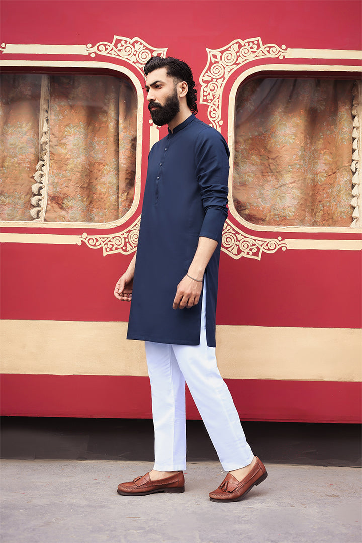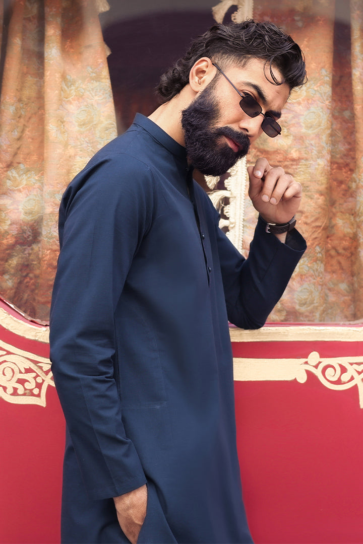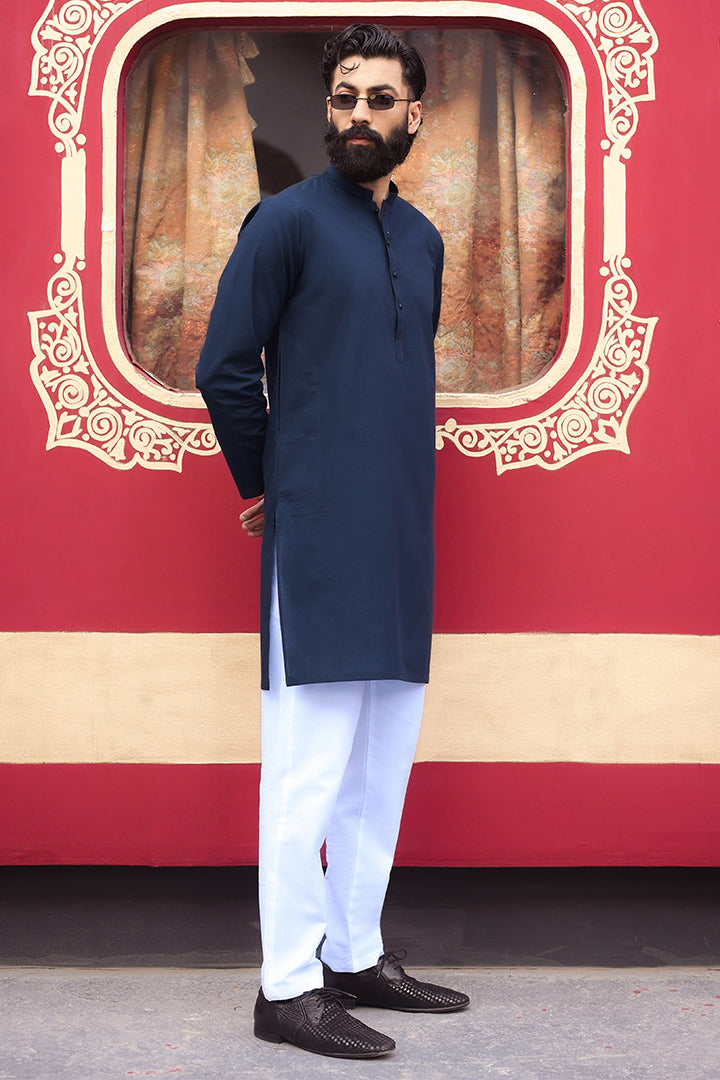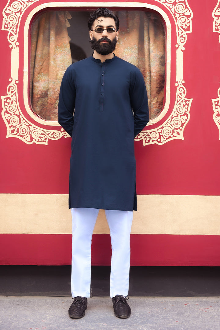 This outfit features an imported 100% cotton Shamray base kurta, paired with a premium imported cotton Zeen base trouser. Crafted for comfort and elegance, it offers a refined look with breathable fabric perfect for all-day wear